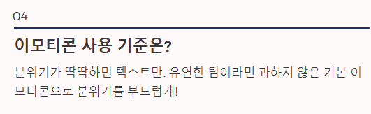 | 이모티콘 | 관계에 따라 다름 | 친근감 표시 (지인 위주) | 격식 있는 사이엔 자제 |
