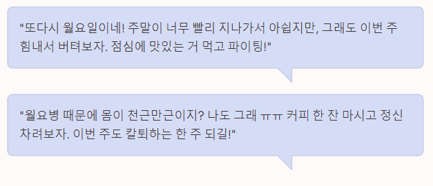 주말의 달콤한 휴식이 지나고 다시 찾아온 월요일은 누구나 조금은 무겁고 피곤하게 느껴질 수 있습니다. 하지만 이럴 때일수록 따뜻한 말 한마디가 상대방의 하루를, 그리고 나의 한 주를 기분