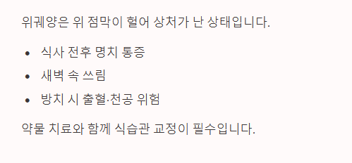 위궤양은 한 번 생기면 끈질기게 괴롭히는 병이지만, 식습관을 바꾸면 분명히 좋아지는 병이기도 합니다. 오늘부터 자극적인 찌개와 커피 대신, 부드러운 양배추 찜과 감자 스프로 위를 달래주세요.