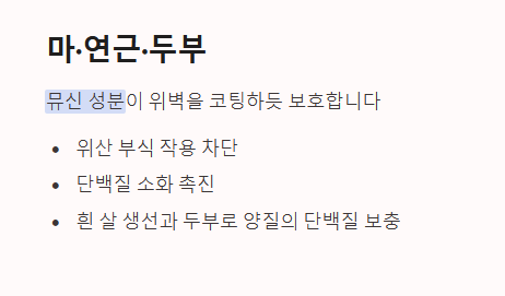 | 뮤신 | 위벽 보호 코팅, 소화 촉진 | 마, 연근, 오크라 | 생으로 갈거나 조림 |