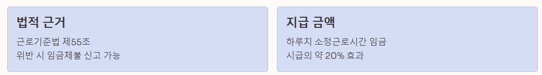 - 법적 근거: 근로기준법 제55조 (위반 시 임금체불로 신고 가능)