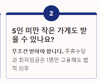 Q2. 5인 미만 작은 가게인데 사장님이 안 줘도 된다고 해요. 잘못된 정보입니다. 연차휴가나 야간수당은 5인 미만 사업장에 적용되지 않지만, 주휴수당과 최저임금은 단 1명의 직원을 고용하더라도 무조건 지켜야 하는 법적 의무입니다.