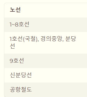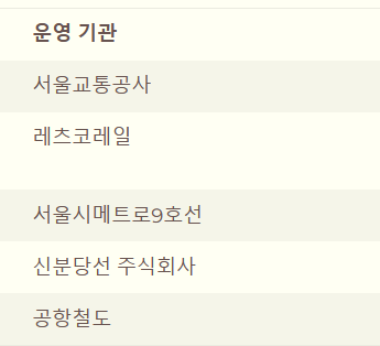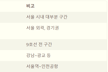 | 1~8호선 | 서울교통공사 | 서울 시내 구간 대부분 |