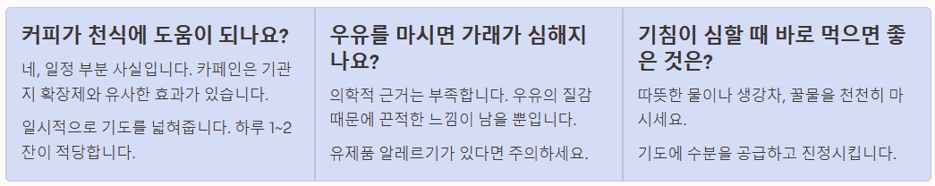 Q3. 기침이 심할 때 바로 먹으면 좋은 것은 무엇인가요?