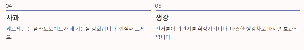 편안한 호흡은 건강한 식탁에서 시작됩니다. 여러분의 기관지가 더 튼튼해지기를 응원합니다.