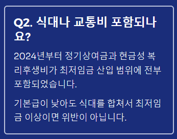 Q2. 최저임금에 식대나 교통비가 포함되나요?