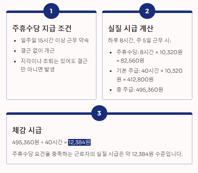 - 예시 상황: 시급 10,320원, 하루 8시간, 주 5일 근무