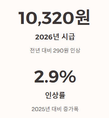| 시간당 급여 | 10,030원 | 10,320원 | +290원 (2.9%↑) |