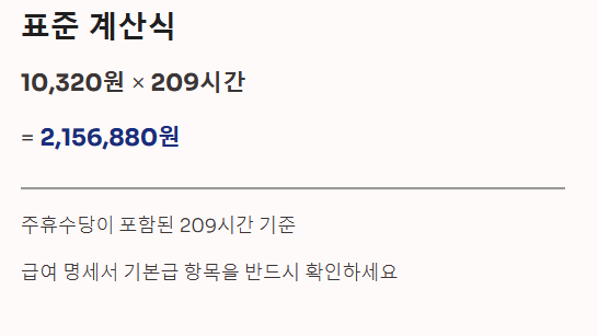 많은 분들이 "시급 × 근무시간"으로만 월급을 계산하려다 혼동을 겪습니다. 월급제 근로자는 **'주휴수당'**이 포함된 209시간을 기준으로 계산해야 정확합니다.