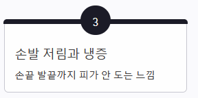 - 혈액순환 장애: 손발이 차갑고 자주 저리며, 조금만 걸어도 종아리가 아픕니다.