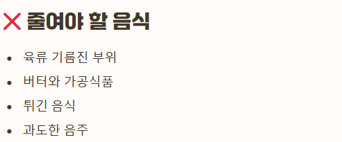 - 포화지방 및 트랜스 지방 줄이기: 육류의 기름진 부위, 버터, 가공식품, 튀긴 음식을 최소화합니다.