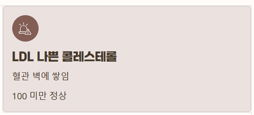 | LDL 콜레스테롤 (나쁜) | 100 미만 | 100 ~ 129 (주의) | 130 이상 (고위험) |