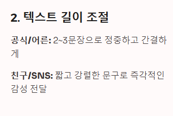 - 공식/어른: 적당한 길이(2~3문장)로 정중하고 간결하게 작성합니다.