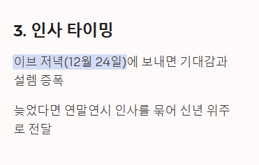 12월 후반에 인사를 전할 때는 크리스마스와 새해 인사를 결합하여 메시지의 효용을 높이는 것이 일반적입니다.