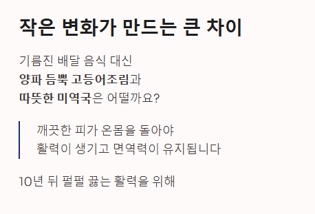 오늘 저녁, 기름진 배달 음식 대신 양파를 듬뿍 넣은 고등어조림이나 따뜻한 미역국으로 식탁을 채워보시는 건 어떨까요? 작은 식습관의 변화가 10년 뒤 펄펄 끓는 활력을 선물할 것입니다.