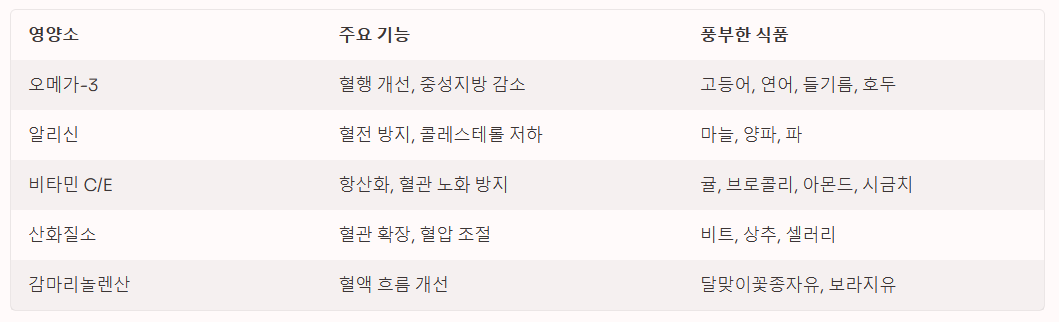 3. 혈관 튼튼! 핵심 영양소와 추천 식품표