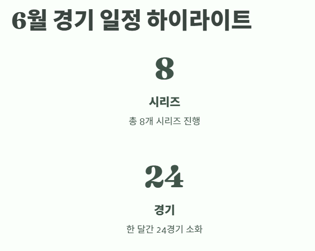 숨 가쁘게 펼쳐질 6월, 자이언츠는 총 8개의 시리즈, 24경기를 소화합니다. 원정과 홈 경기가 균형 있게 배분되어 있으며, 특히 월 중반 펼쳐지는 라이벌 LA 다저스와의 원정 3연전은 최고의 하이라이트가 될 것입니다.