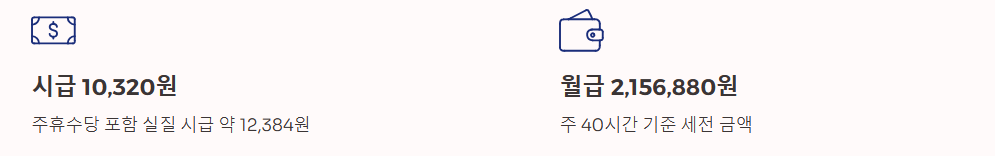 - 월급: 2,156,880원 (주 40시간 기준, 세전)
