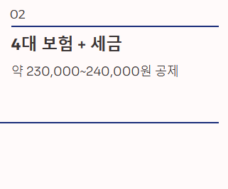 - 예상 공제액: 약 230,000원 ~ 240,000원 (국민연금, 건강보험, 고용보험, 소득세 등)
