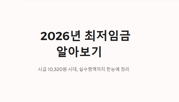 드디어 2026년 적용될 최저임금이 시급 10,320원으로 확정되었습니다. 이제 시급 1만 원 시대를 넘어 본격적인 상승 곡선을 그리고 있는데요. 단순히 시급만 오른 것이 아니라 월급과 연봉, 그리고 주휴수당까지 모든 기준이 달라집니다. 오늘 글에서는 2026년 바뀌는 급여표와 통장에 실제로 들어오는 실수령액까지 알기 쉽게 정리해 드립니다.