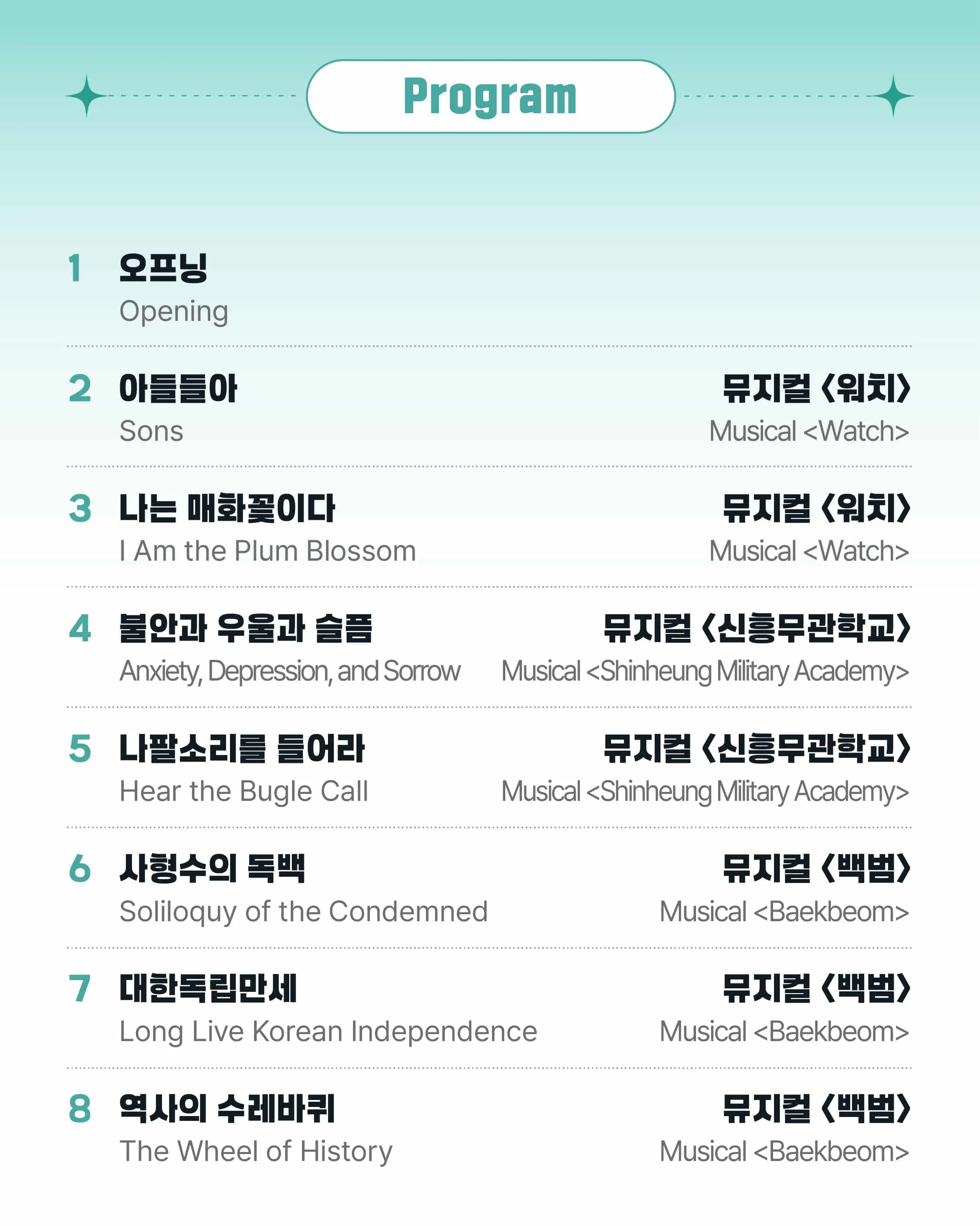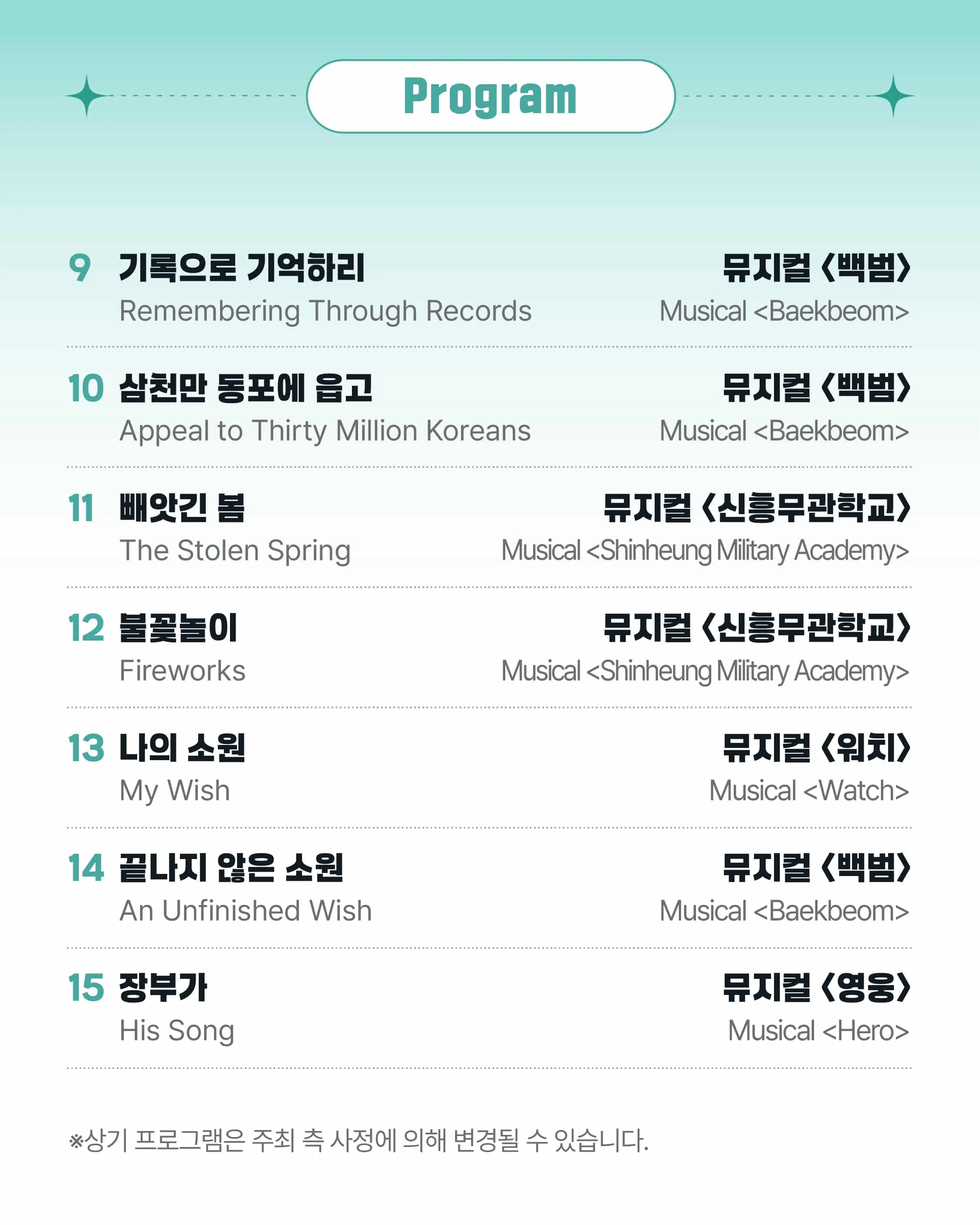 - Q: 광복절 시즌 외에도 역사 뮤지컬을 볼 수 있나요?