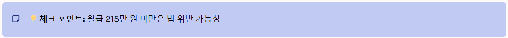 따라서 2026년에는 근로계약서상 기본급이 최소 2,156,880원 이상이어야 법적 효력이 있습니다. 만약 이보다 금액이 적다면 최저임금법 위반이 되므로 반드시 확인이 필요합니다.