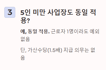 Q2. 5인 미만 사업장도 적용되나요? A2. 네, 무조건 적용됩니다. 5인 미만 사업장은 야간/연장수당 가산 의무(1.5배)만 없을 뿐, 최저임금과 주휴수당 지급 의무는 동일합니다.