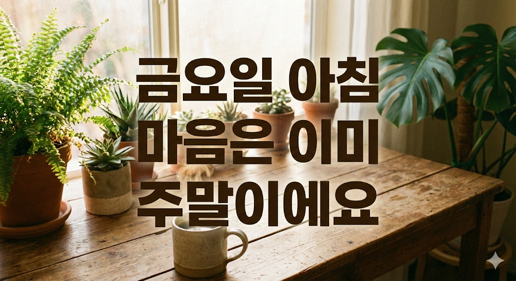 직장인과 학생들이 일주일 중 가장 손꼽아 기다리는 요일, 바로 금요일 아침이 밝았습니다. '불금'이라는 단어만 떠올려도 없던 힘이 솟아나는 마법 같은 날입니다. 지난 4일간의 고단함을 털어