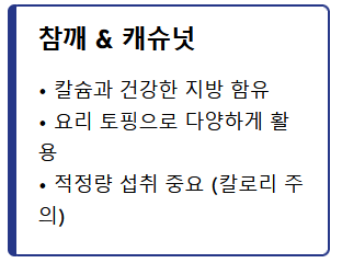 - 최고의 마그네슘원: 씨앗류 (호박씨, 참깨), 견과류 (아몬드, 캐슈넛)
