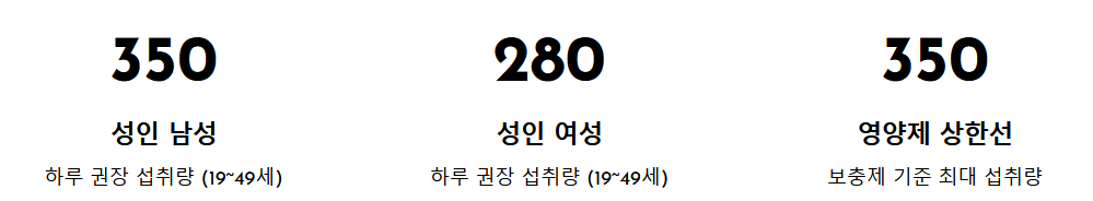 - 성인 상한 섭취량: 영양제 기준 하루 350mg