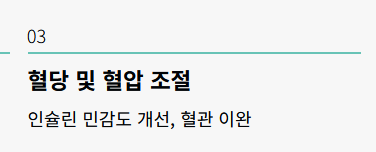 - 혈당 및 혈압 조절: 인슐린 민감도를 개선하여 혈당 관리를 돕고, 혈관을 이완시켜 정상 혈압 유지에 기여합니다.