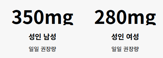 마그네슘 공식 권장 섭취량 (성인 기준)