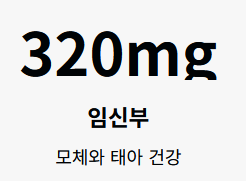 | 임신부 | 320mg/일 | 태아 성장 및 모체 건강 유지를 위해 증가 |