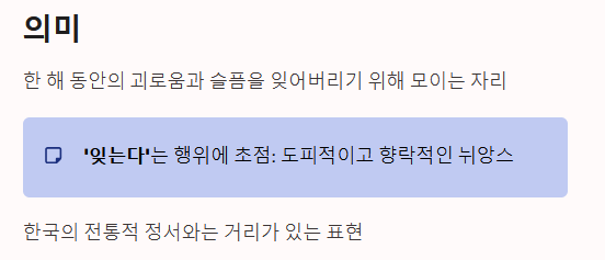 - 송년회: 정리와 마무리를 강조, 한국 정서