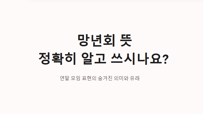 12월이 되면 거리 곳곳에서 캐럴이 울려 퍼지고, 지인들과의 약속으로 다이어리는 꽉 차게 됩니다. 이때 가장 많이 주고받는 말이 우리 망년회 한번 해야지?입니다. 너무나 익숙하게 사용해 온 단어지만, 정작 그 속에 담긴 정확한 뜻과 유래를 알고 쓰는 경우는 드뭅니다.