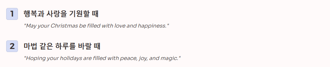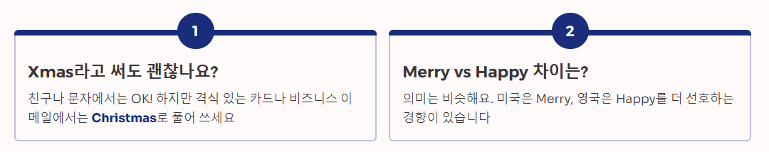 - 종교를 모르거나 비즈니스 파트너라면: Happy Holidays 또는 Season's Greetings가 훨씬 안전하고 정중한 표현입니다.