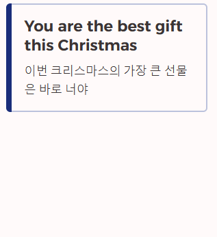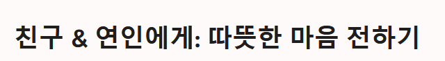 | 친구/연인 | You are the best gift this Christmas. | 이번 크리스마스의 가장 큰 선물은 바로 너야. |