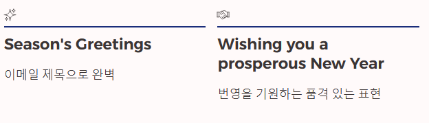 | 비즈니스 | Season's Greetings. | (카드나 이메일 제목으로) 즐거운 연말 보내세요. |
