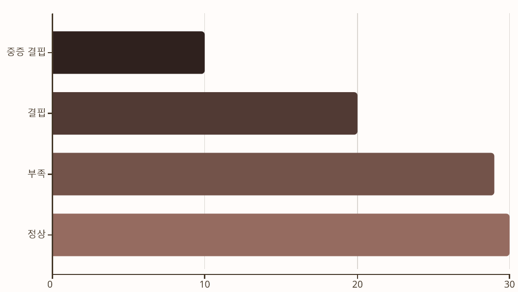 | 20 ~ 29 | 부족 (불충분) | 일일 권장량 이상의 보충 필요 |