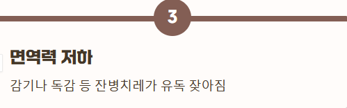 | 면역력 저하 | 감기나 독감 등 잔병치레가 잦아짐 | 면역 체계가 제대로 작동하지 못함 |