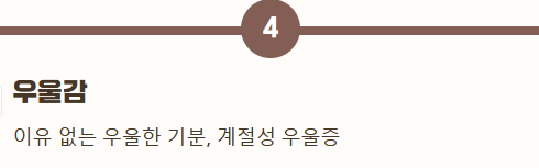 | 기분 변화 | 이유 없는 우울감, 계절성 우울증 | 기분 관련 호르몬(세로토닌) 생성에 영향 |