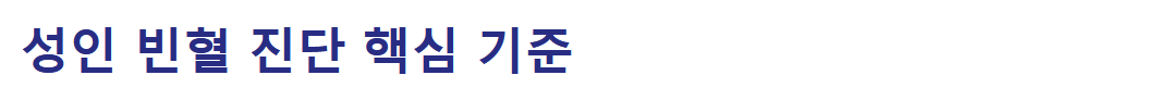 📌 핵심 요약: 성인 빈혈 진단 기준 (WHO & 일반 기준)