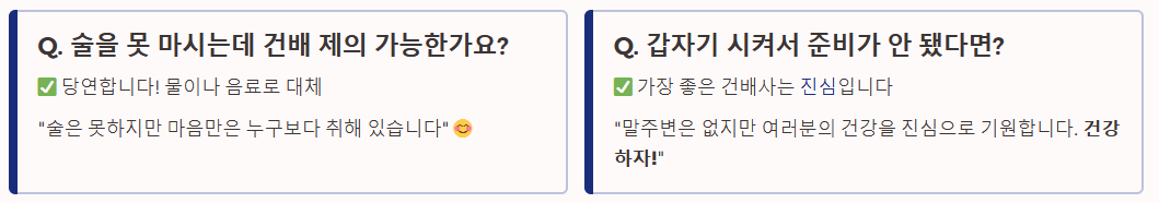 Q1. 술을 못 마시는데 건배 제의를 해도 되나요?