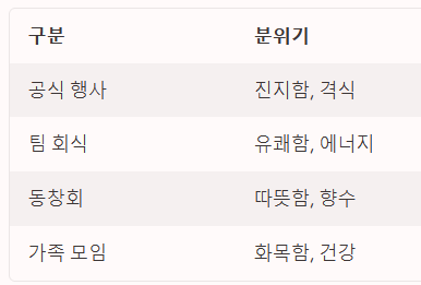 어떤 문구를 고를지 고민된다면 아래 표를 참고하여 모임 성격에 딱 맞는 톤앤매너를 결정해 보세요.