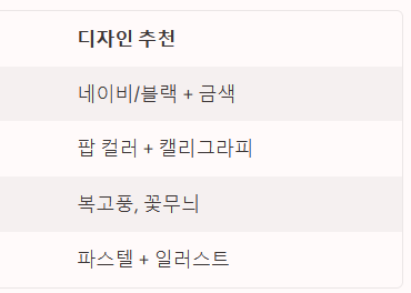구분추천 분위기문구 특징디자인 추천