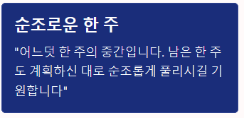 - '수요일'이라는 단어 강조하기: 막연한 안부보다 "벌써 수요일이네요"라며 시간의 흐름을 공유하는 것이 공감대 형성에 좋습니다.