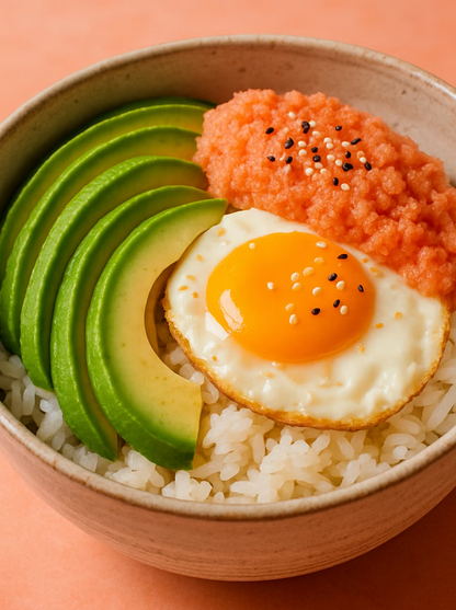 아보카도 명란 비빔밥 따뜻한 밥 위에 슬라이스 한 아보카도 반 개, 달걀 프라이(반숙 추천), 명란젓 한 스푼, 김가루를 올립니다. 참기름을 한 바퀴 두르고 쓱쓱 비벼 먹으면 별다른 반찬이 필요 없을 정도로 맛이 훌륭합니다. 명란이 없다면 간장 소스로 대체해도 좋습니다.