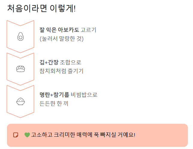 처음 도전한다면 잘 익은 아보카도를 골라 밥과 함께 비벼 드셔보세요. 고소하고 크리미한 매력에 빠지게 될 것입니다. 오늘 저녁 식탁에 건강한 아보카도 요리를 올려보는 것은 어떨까요?