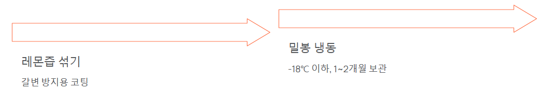 - 지퍼백이나 밀폐용기에 담아 공기를 최대한 빼고 -18℃ 이하 냉동실에 보관합니다.