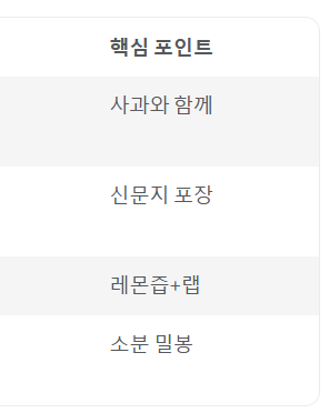 | 자른 후 | 냉장 | 4~7℃ | 1~2일 | 레몬즙 바르고 랩으로 밀착 |